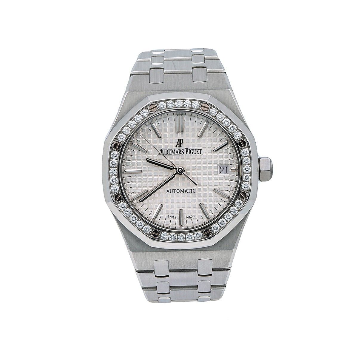 **Exemples incluent : **Rolex Day-Date avec cadrans de diamants d'usine Audemars Piguet Royal Oak avec lunettes serties d'usine