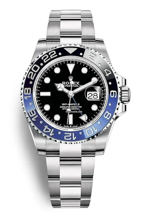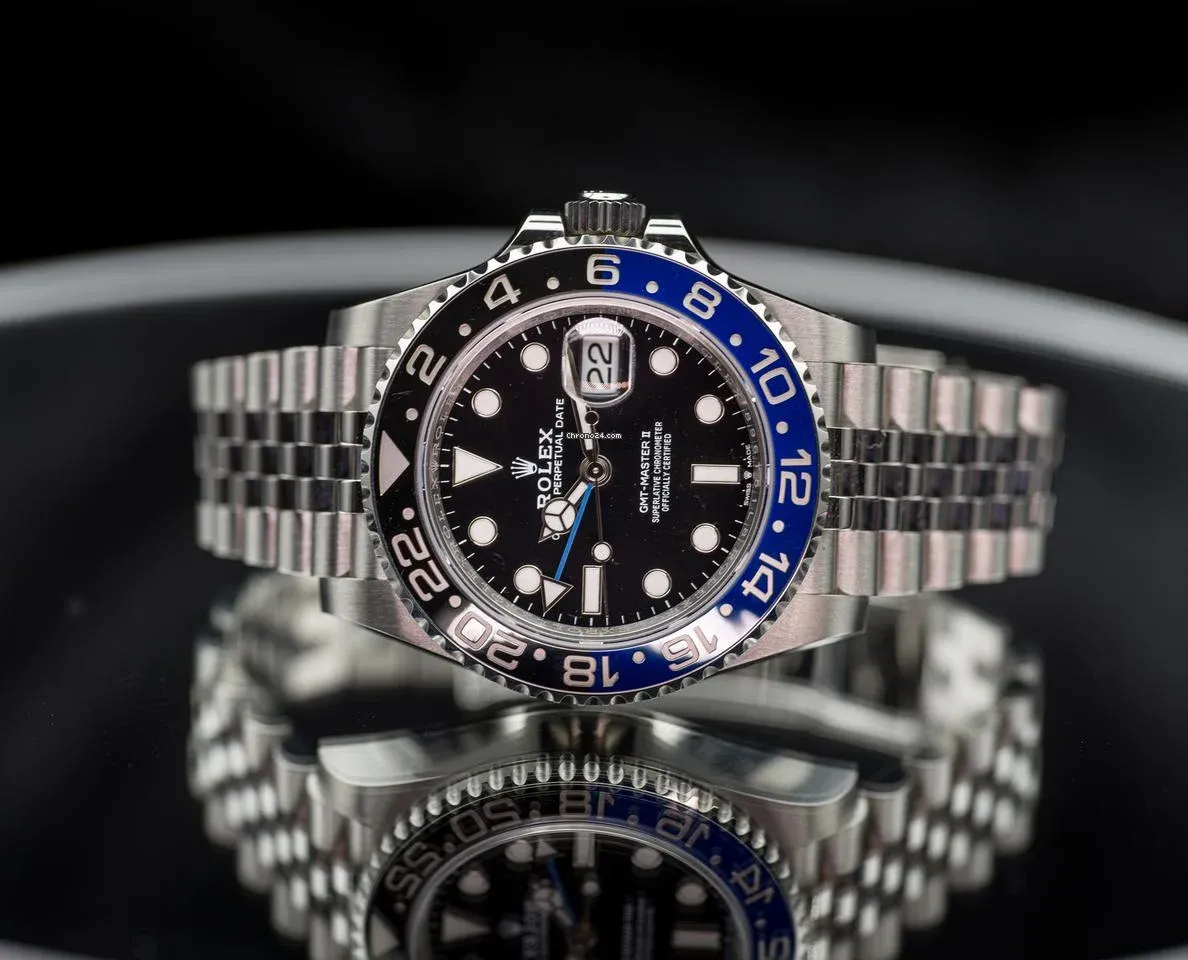 The Rolex Batman refers to the GMT-Master II with a black and blue ceramic bezel paired with the Oyster bracelet.