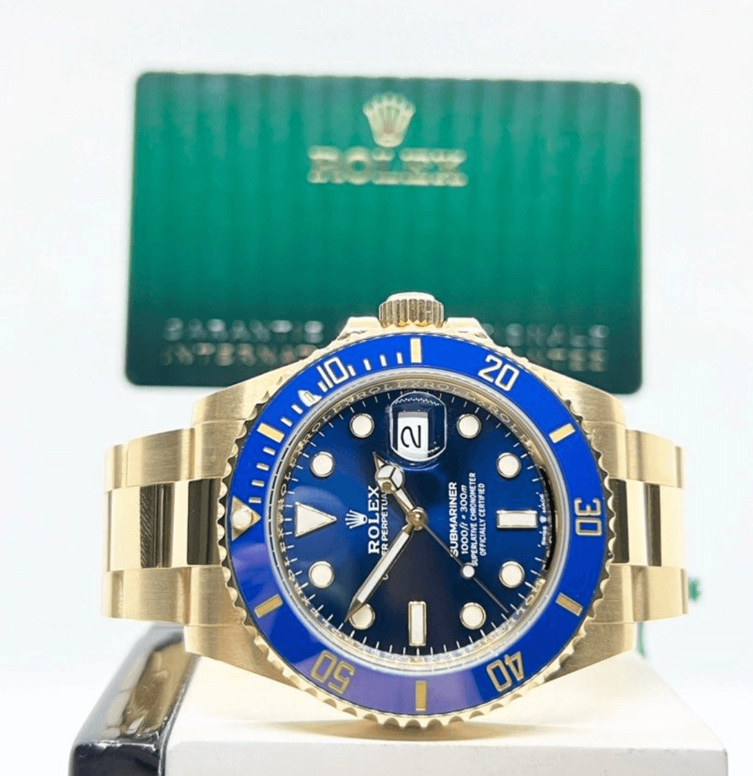 Model : 126618LB Also known as : Oyster Submariner Date Case size : 41mm Dial : Royal Blue Dial With Luminous Dot Numerals Index Case metal : 18ct Yellow Gold Clasp/ Buckle Type : 18ct Yellow Gold Folding Clasp With Glide Lock Case back : Solid Bezel : 18ct Yellow Gold Rotating Bezel With Blue Ceramic Insert Strap/Bracelet : 18ct Yellow Gold Oyster Bracelet Movement type : Automatic Water resistance : 300m Crystal : Sapphire Series : AN Dated : March 2022 ( Agent Warranty Till March 2027 ) Original Box : Yes Original Card / Papers : Yes ( NFC Warranty Card )
